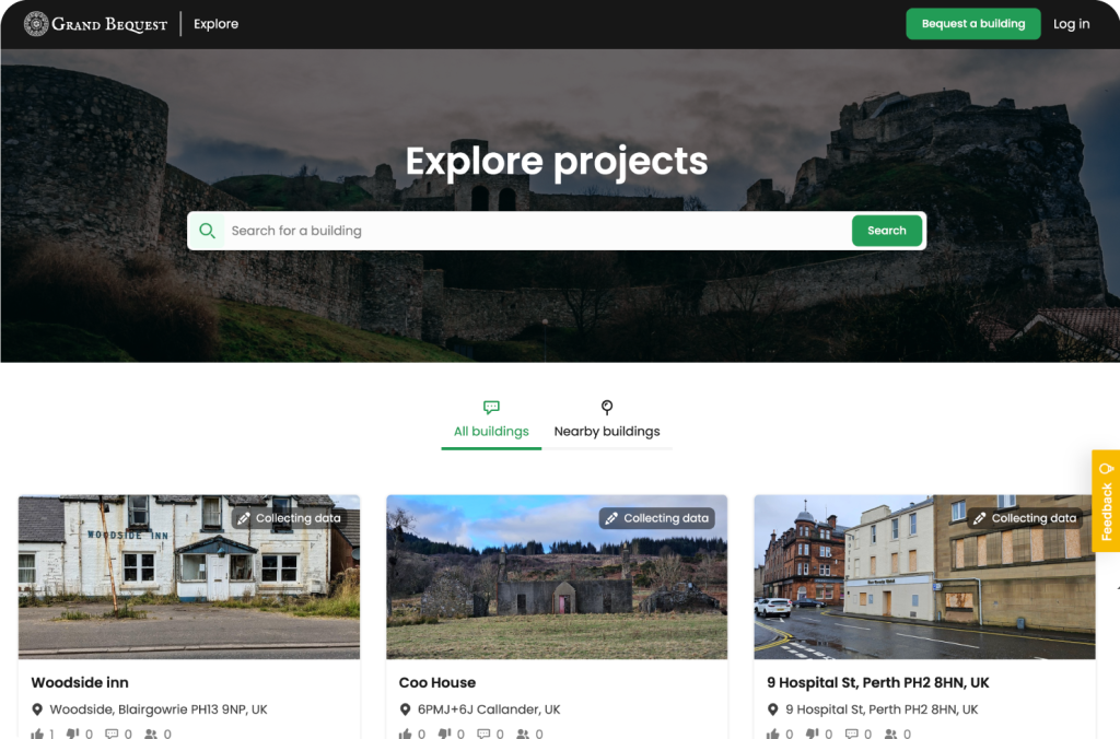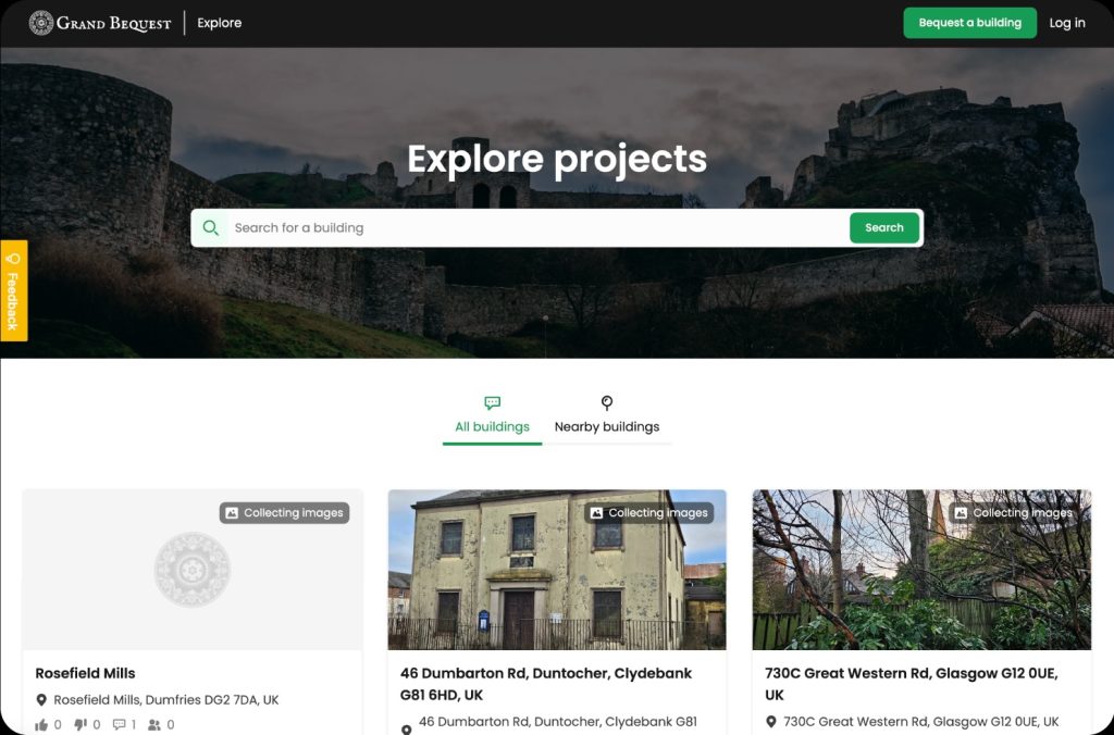 Dive right in without an account to bequest or browse buildings. If you’d like to be kept up-to-date with building projects and share your ideas, then you can register for an account.